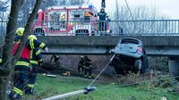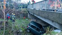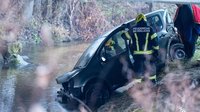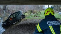Am Nachmittag des 7.12. kam ein PKW mit drei Insassen aus bislang unbekannter Ursache von der Fahrbahn ab, sprang über eine Böschung und kam schließlich im Bachbett zum Stillstand.