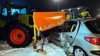 Passend zum winterlichen Wetter wurde die Jänner-Übung der Gruppe U40 an die aktuellen Bedingungen angepasst. Angenommenes Szenario war eine Frontalkollision zwischen einem Schneepflug mit gehobenem Schild und einem Pkw. Dabei wurden beide Insassen des Pkw unter dem Schneepflugschild eingeklemmt.